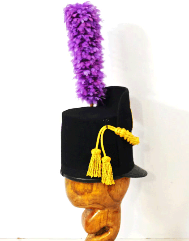 Constructed with premium materials, including high-grade Rambo-style leather for enhanced strength and longevity, this piece maintains the traditional look while offering superior modern craftsmanship. The shako features: