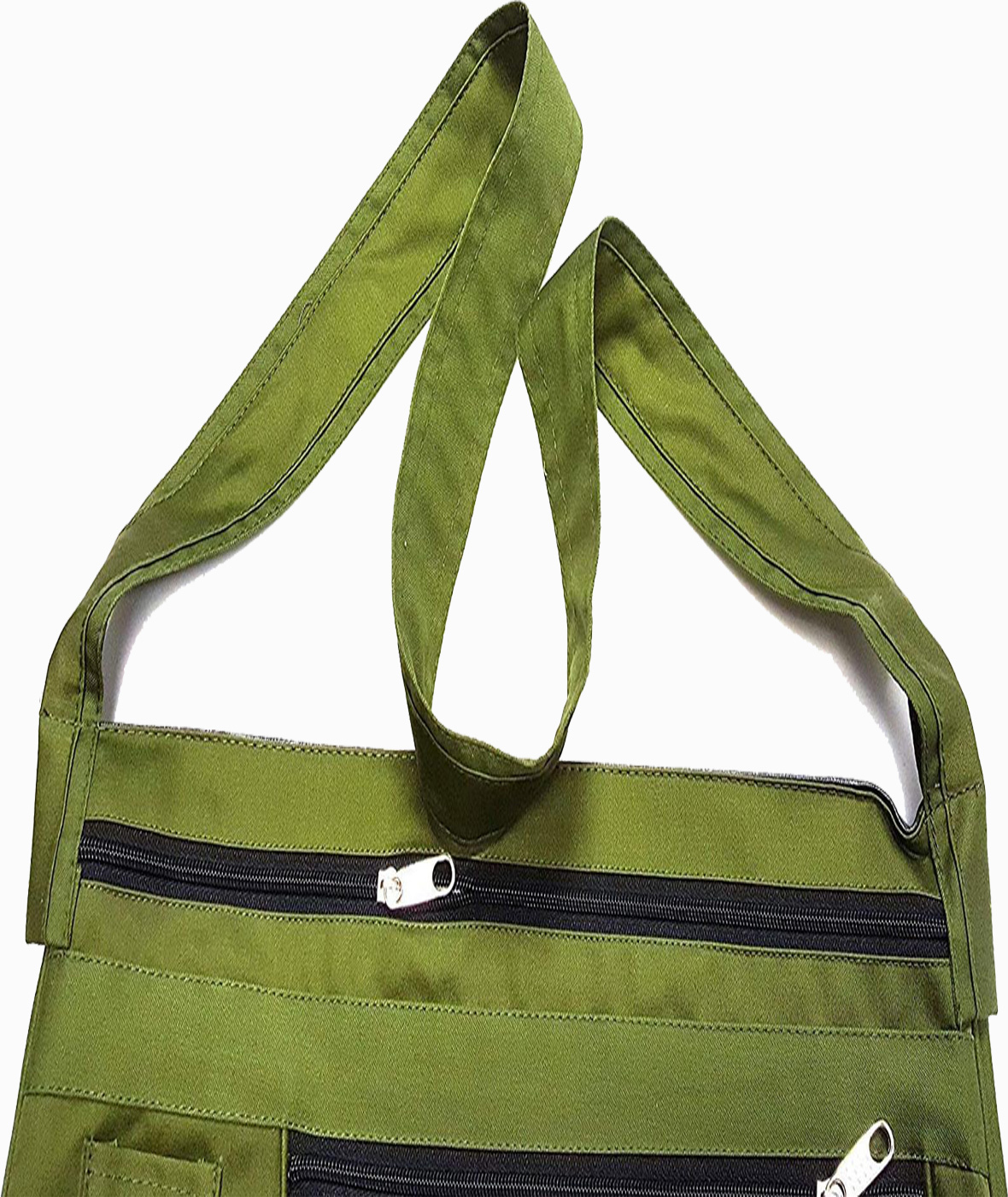 It comes with a 2 inch wide shoulder strap, It has two front separate pockets,It has two also large deep and wide pouches in middle.