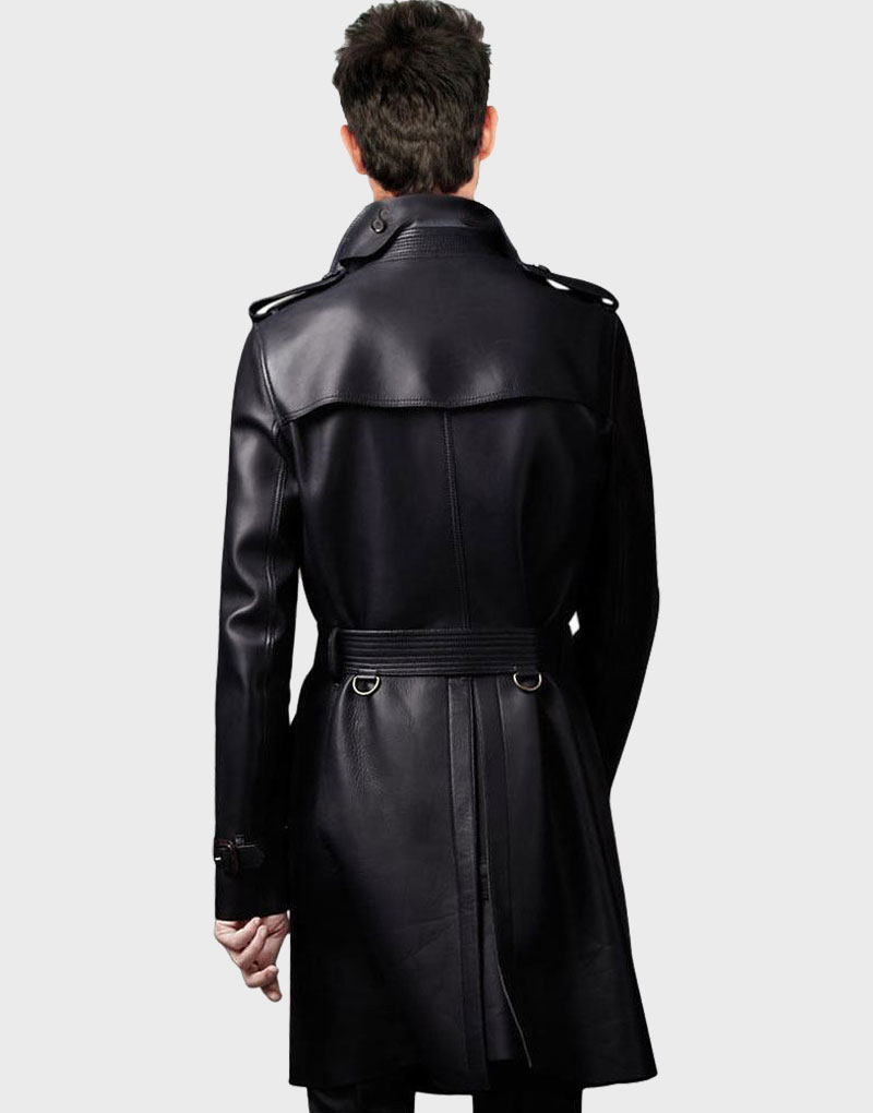 Decent Look Black Leather Long Coat For Men