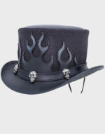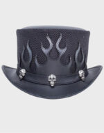 Black Flames Mesh Leather Top Hat/Custom Made