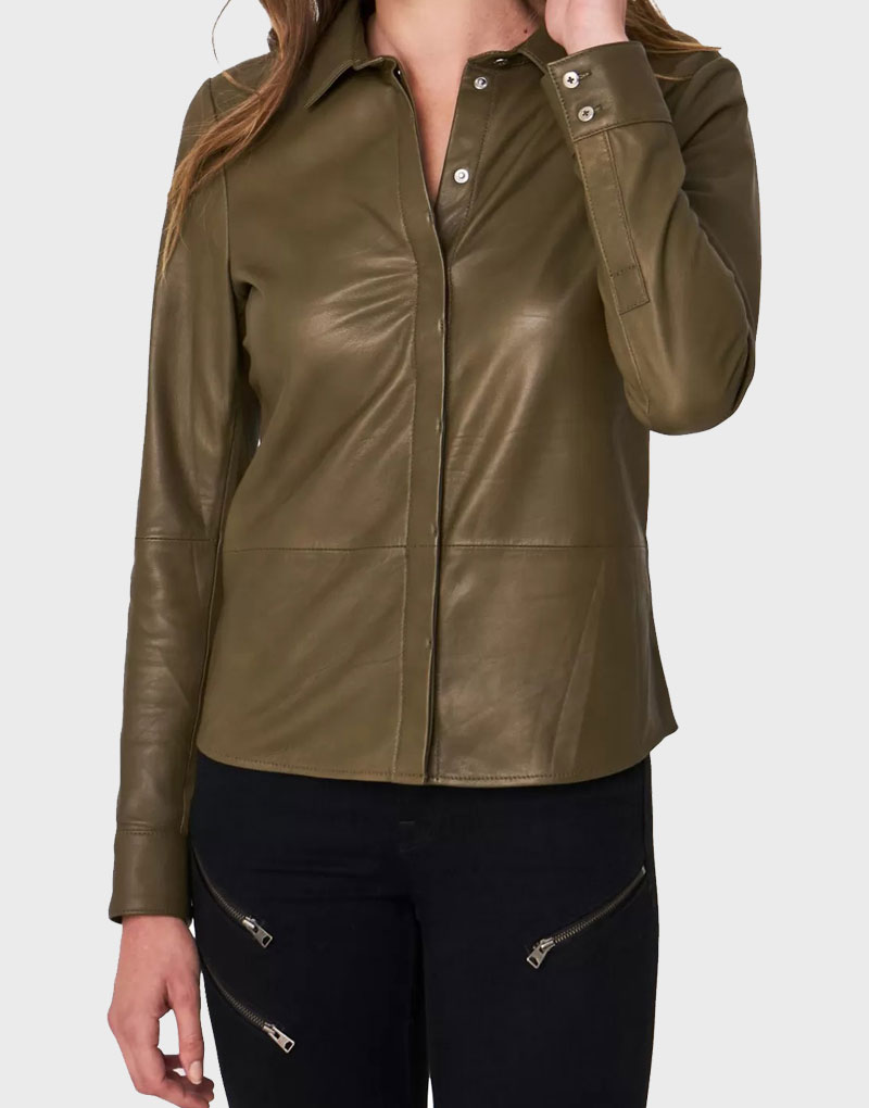 Brown Leather Shirt For Women