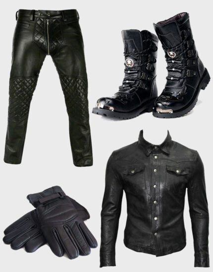 Indulge in the timeless allure of leather with our exclusive collection of leather outfits for men. Whether you’re a fashion enthusiast or someone looking to elevate your wardrobe, our range offers a variety of leather essentials that seamlessly blend style and sophistication. Gloves: Complete your look with a touch of refinement. Our leather gloves are crafted with precision, offering a perfect combination of comfort and elegance. From classic black to bold shades, discover a glove collection that enhances your style quotient. Shirts: Make a statement with our leather shirts that redefine casual and formal wear. Impeccably tailored and designed for versatility, these shirts effortlessly transition from day to night. Explore a range of textures and finishes to suit your individual taste. Pants: Step into comfort and style with our leather pants collection. Whether you prefer a classic fit or a contemporary silhouette, our pants are crafted to perfection, ensuring a flattering and comfortable fit for every occasion. Vests: Add a layer of sophistication to your ensemble with our leather vests. From sleek and minimalist designs to intricately detailed pieces, our vests complement various styles. Perfect for layering or as a standalone statement, discover the versatility of our vest collection. Shoes: Complete your leather ensemble from head to toe with our curated selection of leather shoes. From rugged boots to stylish loafers, each pair is designed to enhance your overall look while providing the durability that leather is renowned for. Indulge in the luxury of genuine leather and elevate your fashion game with our comprehensive collection of leather outfits. Each piece is a testament to quality craftsmanship, ensuring you stand out with confidence and style. Explore our leather outfits for men and redefine your wardrobe today.