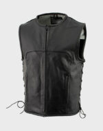Geniune Black Leather Vest With Laces Waist Adjuster