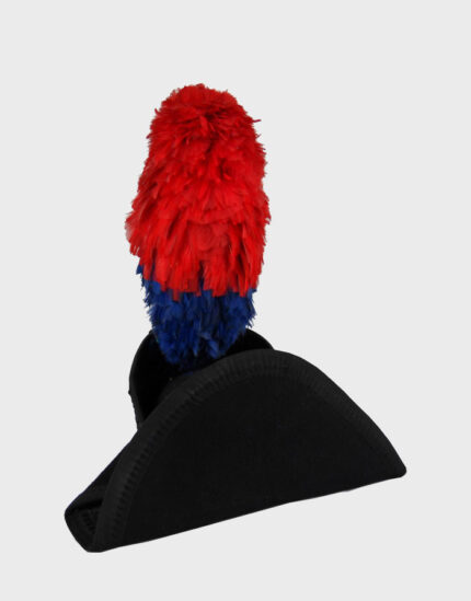Italian Bicorne Cocked Hat with Black Trim & Hackle Plume