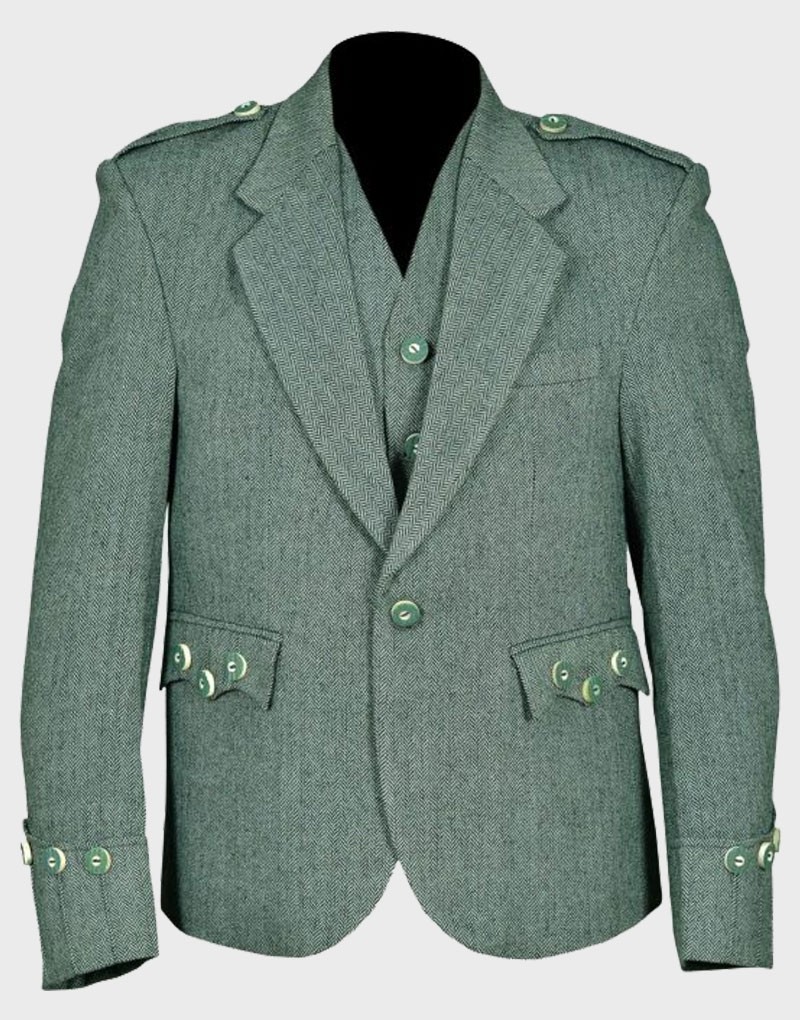 Lovat Green Tweed Argyle Jacket With 5 Button and
