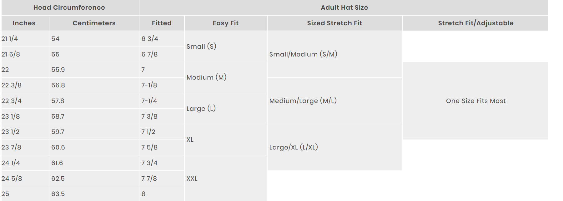 Cap Size Chart