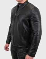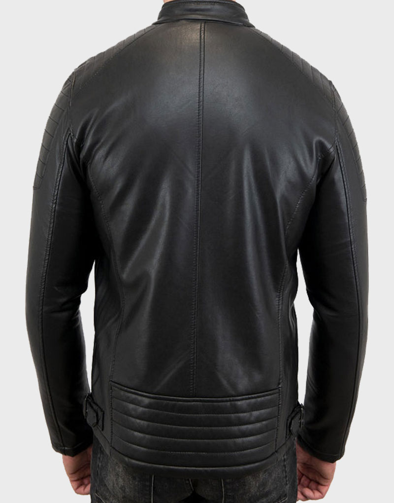 Men Black Waxed Sheepskin Leather Biker Jacket