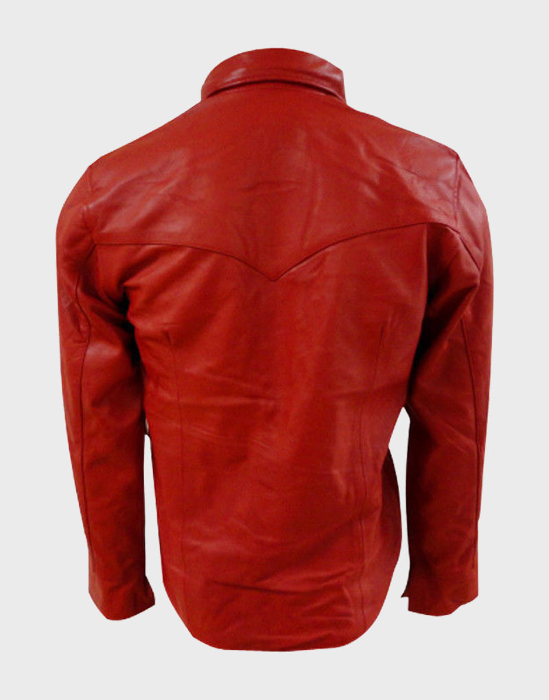 Men Stylish Red Leather Shirt