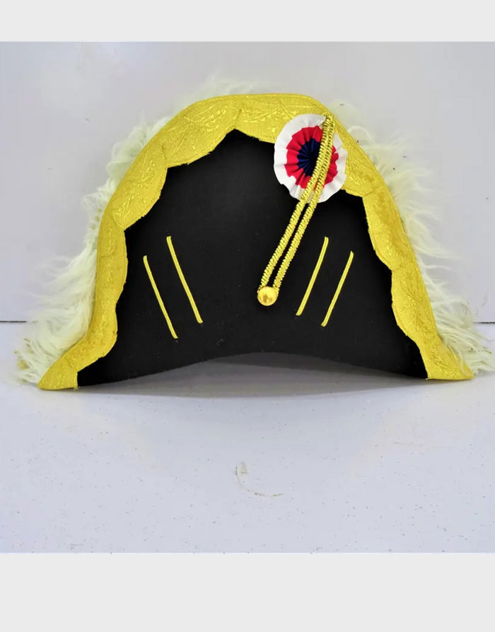 Traditional Bicorne Shape: Features the iconic two-pointed “cocked hat” design.