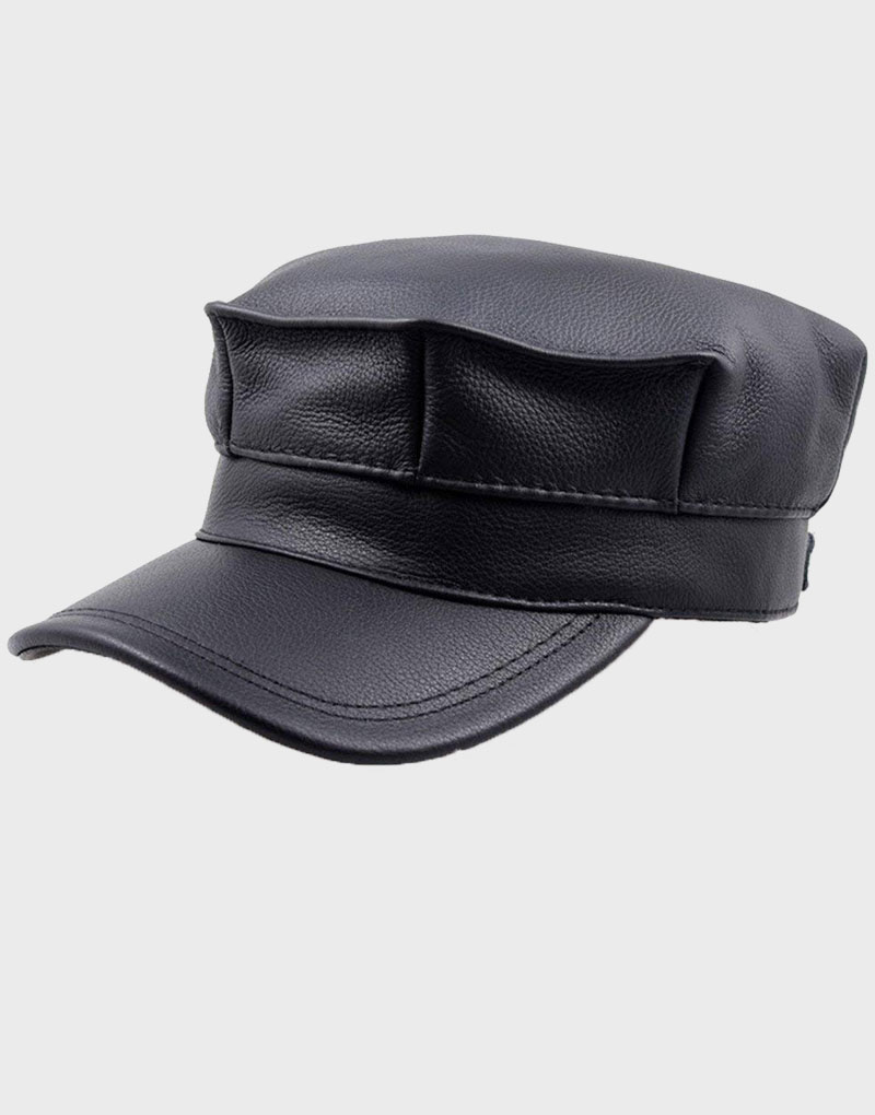 U.S. Military Officer Visor Crusher Leather Cap American Fashion Hat
