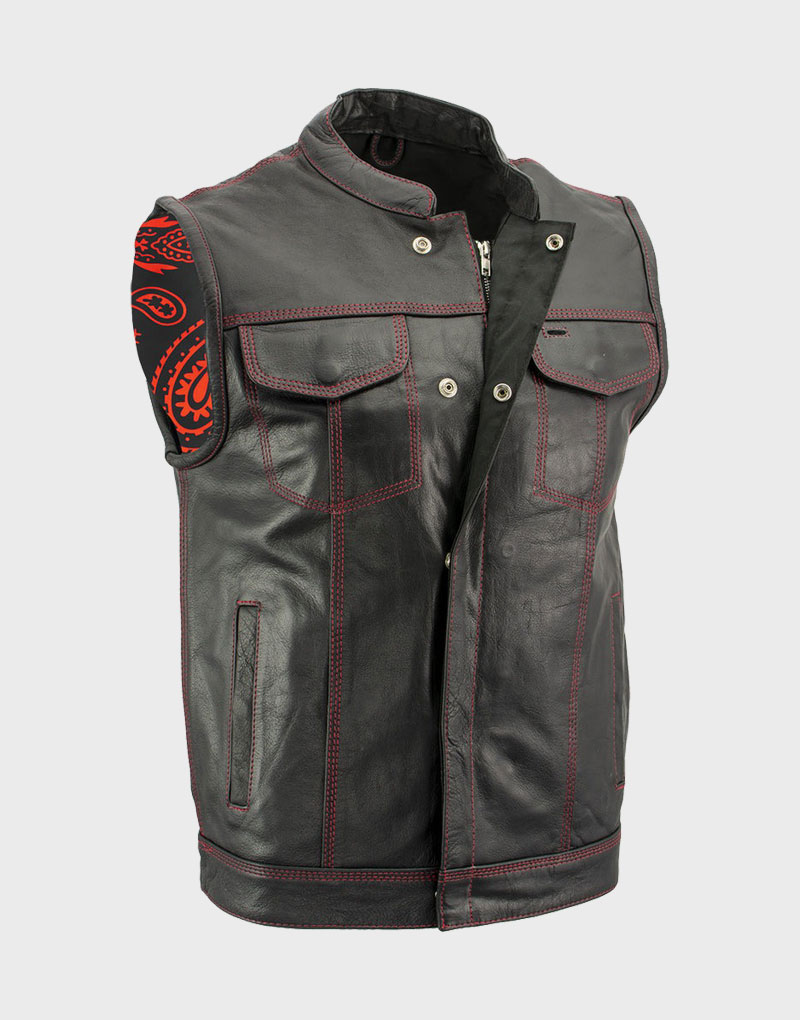 Red Stitched Lambskin Leather Vest
