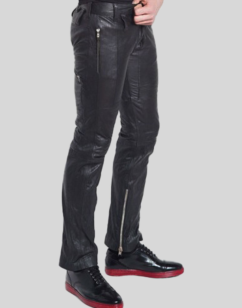 Side Zipper Black Leather Pant