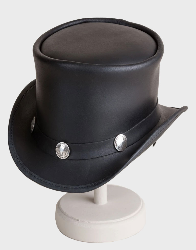 Steampunk El Dorado Black Leather Top Hat with Buffalo Nickels