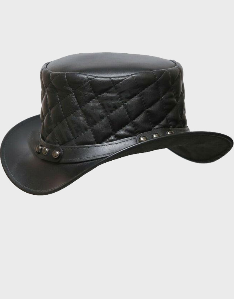 Quilted Style Steampunk Leather Studd Band Top Hat / Custom made