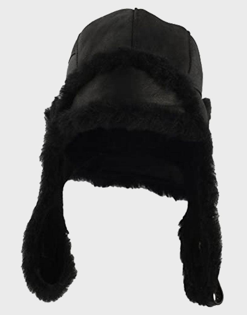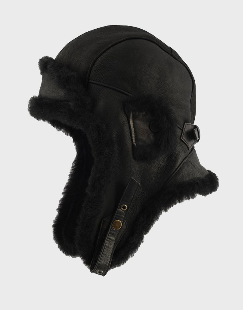 Sterkowski Genuine Leather Cap Shearling Aviator Trapper Cap Black