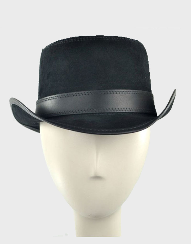 Black Suede Leather Deadman Top Hat: Made from genuine black naked cowhide leather