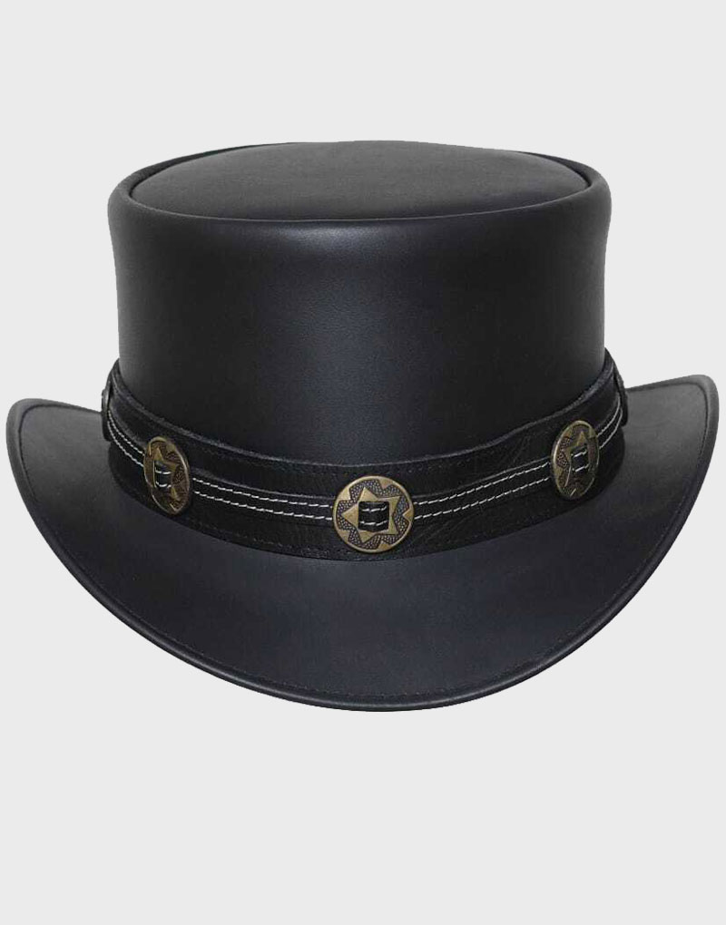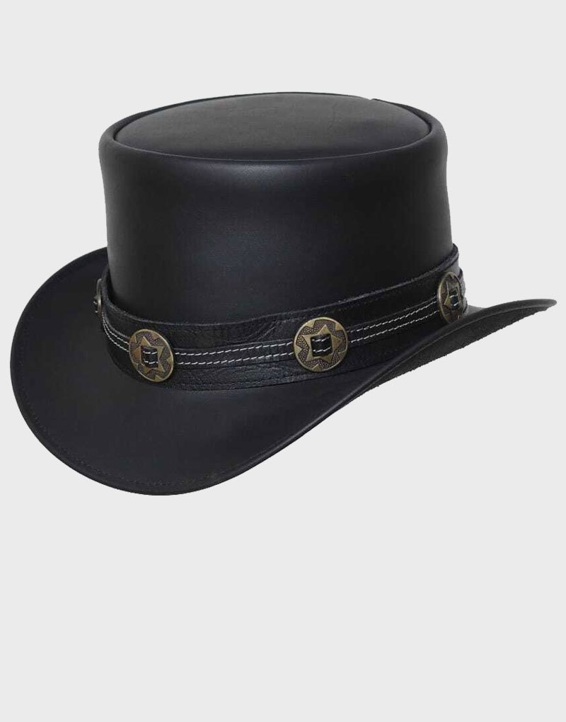 Steampunk Studd Band Black Leather Top Hat Original price was: $200.00.Current price is: $140.00.