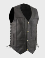 Simple Style Black Leather Vest For Gentlemen