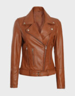 Women Brown Leather Moto Jacket