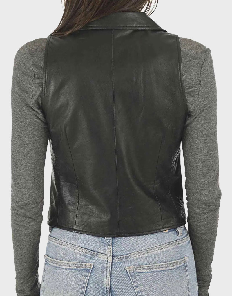 Women’s Charcoal Black Leather Vest
